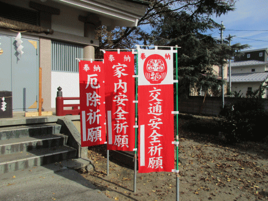 八幡神社、布袋尊、弁財天、毘沙門天、安産祈願、地鎮祭、南無大師遍照金剛、幟旗